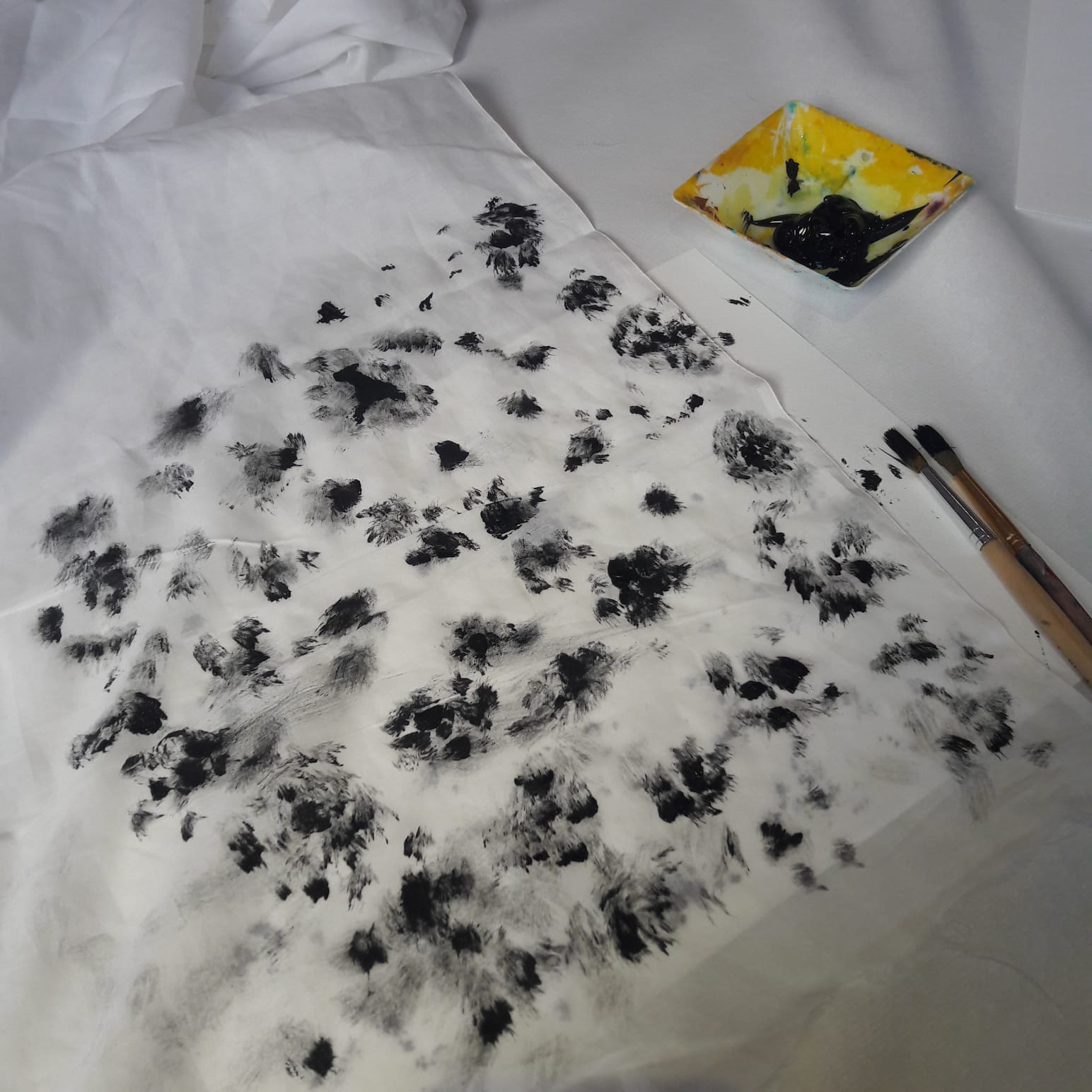 SOIE ET COTON. Rencontrer ces matières, découvrir leur histoire, imprimer sur coton, peindre sur soie. Classes de petite section à CM2, Ecole élémentaire de Mallemoisson (04).