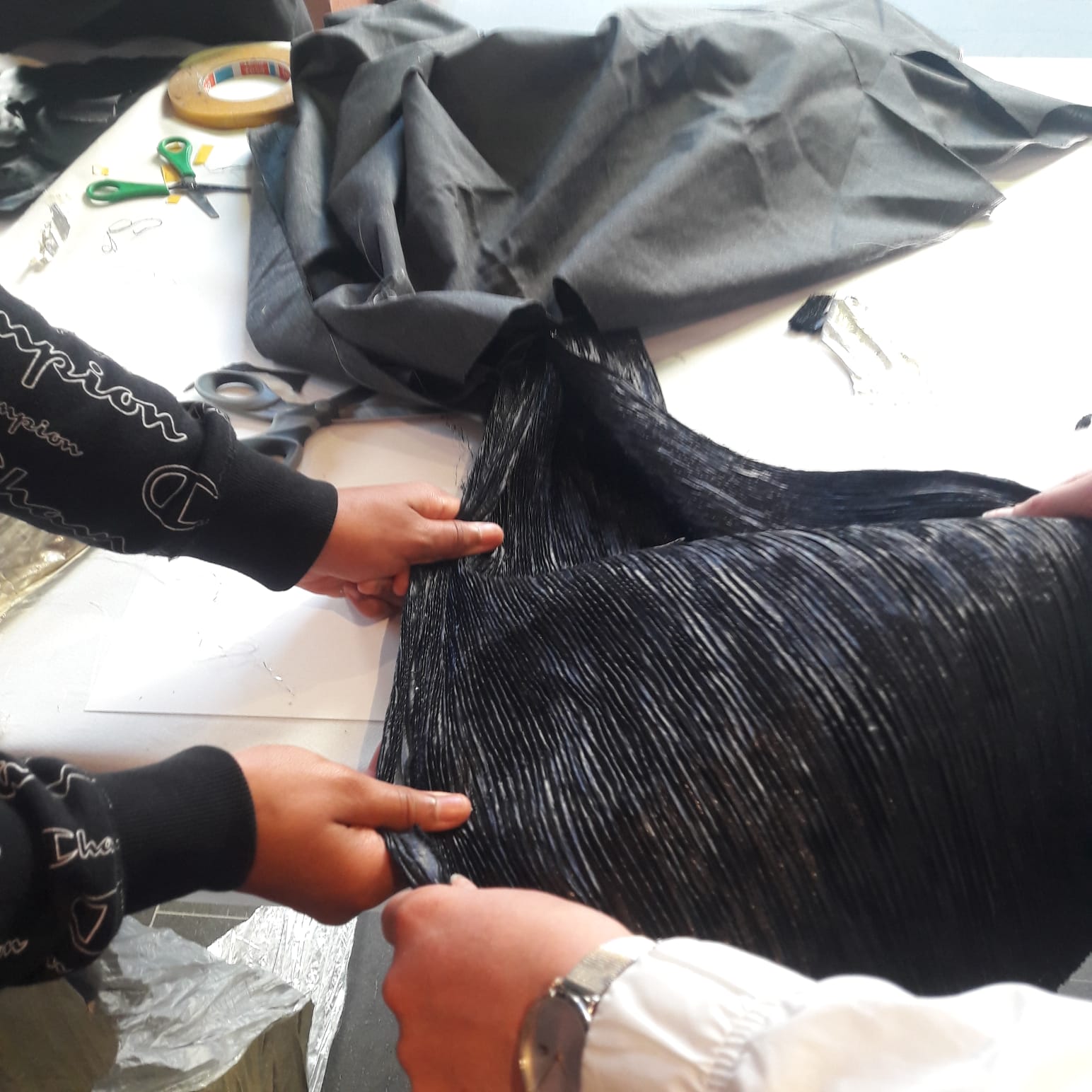L’AFRIQUE EN TISSUS. Approche sensorielle des textiles, représentation d’un imaginaire, masques, jeux et compositions. Ateliers accompagnés de Cécile Gleizé et Coralie Romeu infirmières arthérapeute et danse-thérapeute, Centre Médico Psychologique pour Enfants et Adolescents, antenne psychiatrique Centre hospitalier -Digne-les-Bains (04)