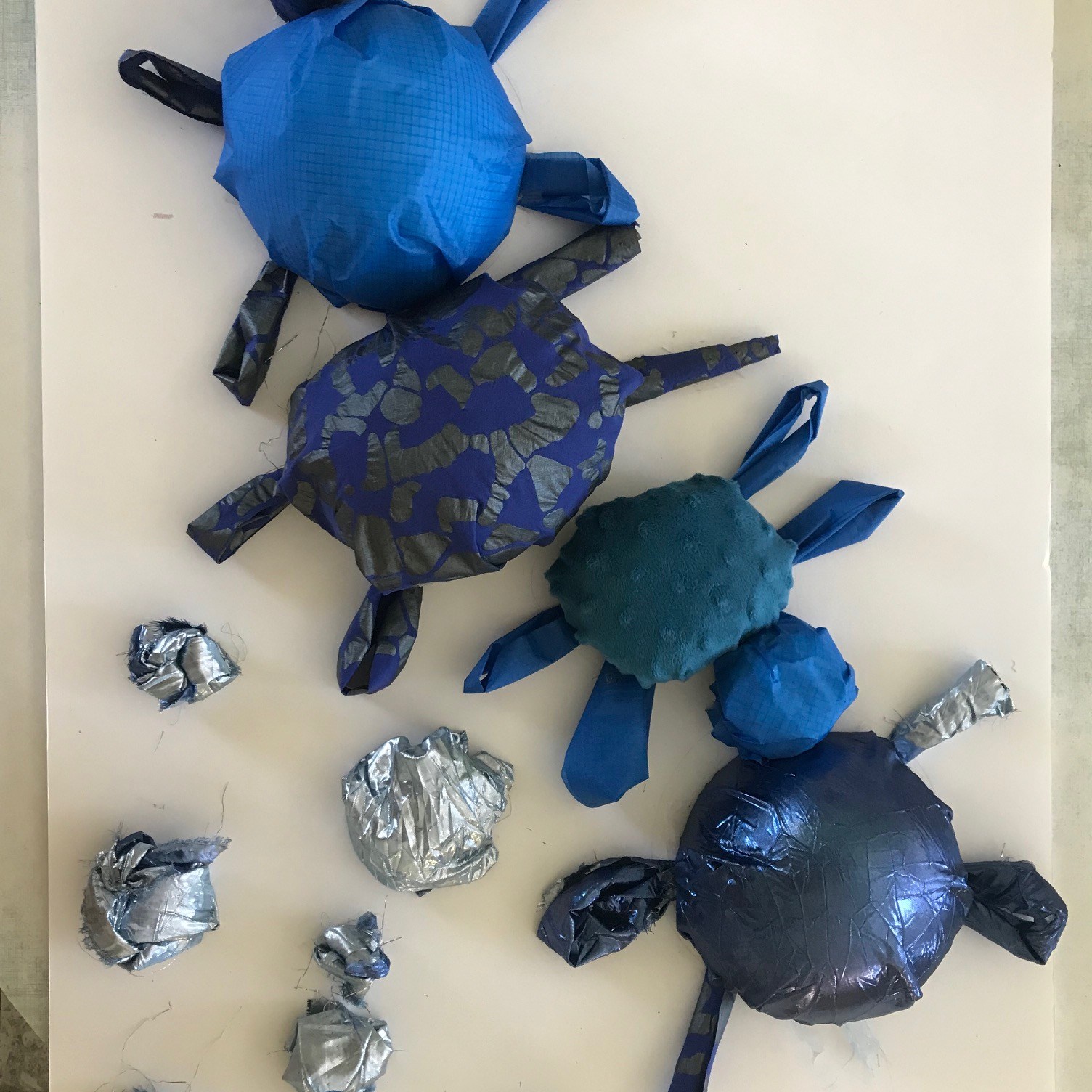 MATIERES A BESTIAIRES. Projet pédagogique proposé en lien avec le spectacle « Légende » programmé par le Théâtre Durance et vu par les élèves. Imaginer un monde d’animaux extraordinaires à partir de matières textiles, explorer différentes possibilités de les représenter pour en garder trace. Fresque : CE1-CE2, sculptures : CM1-CM2. Ecole primaire Paul Langevin – Château-Arnoux (04)