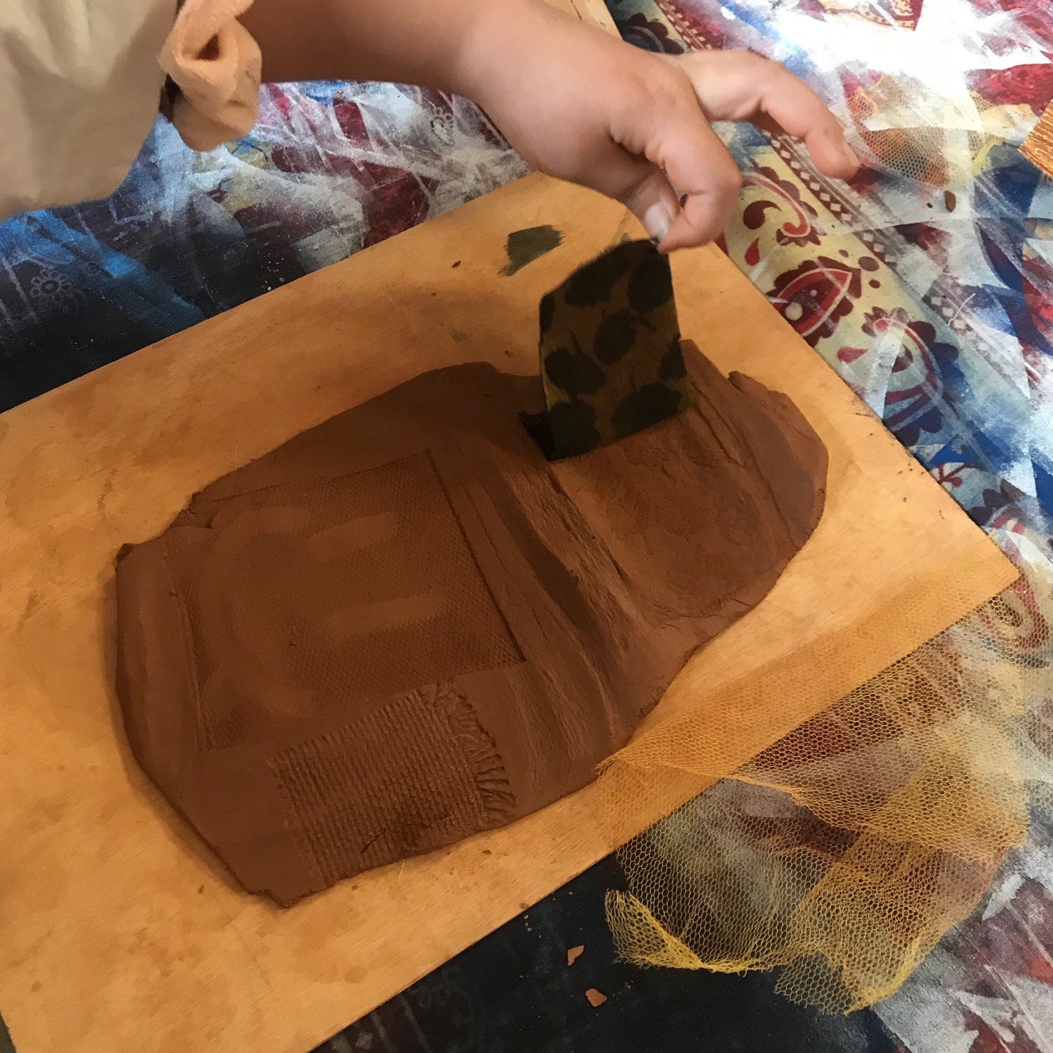 Découverte et travail de l’argile avec les tissus pour les CE1/CE2.
