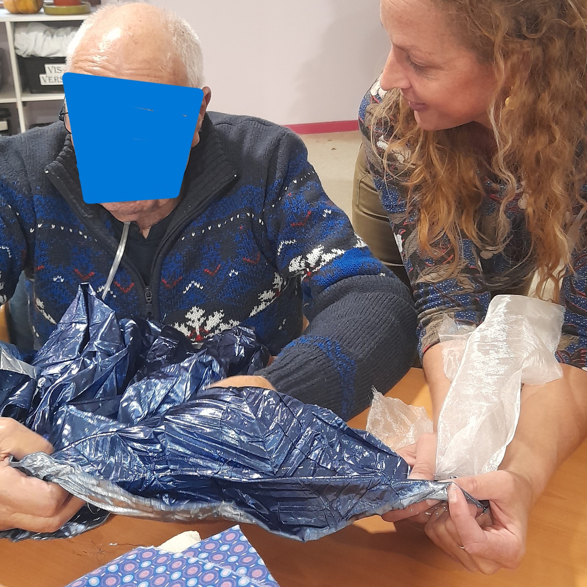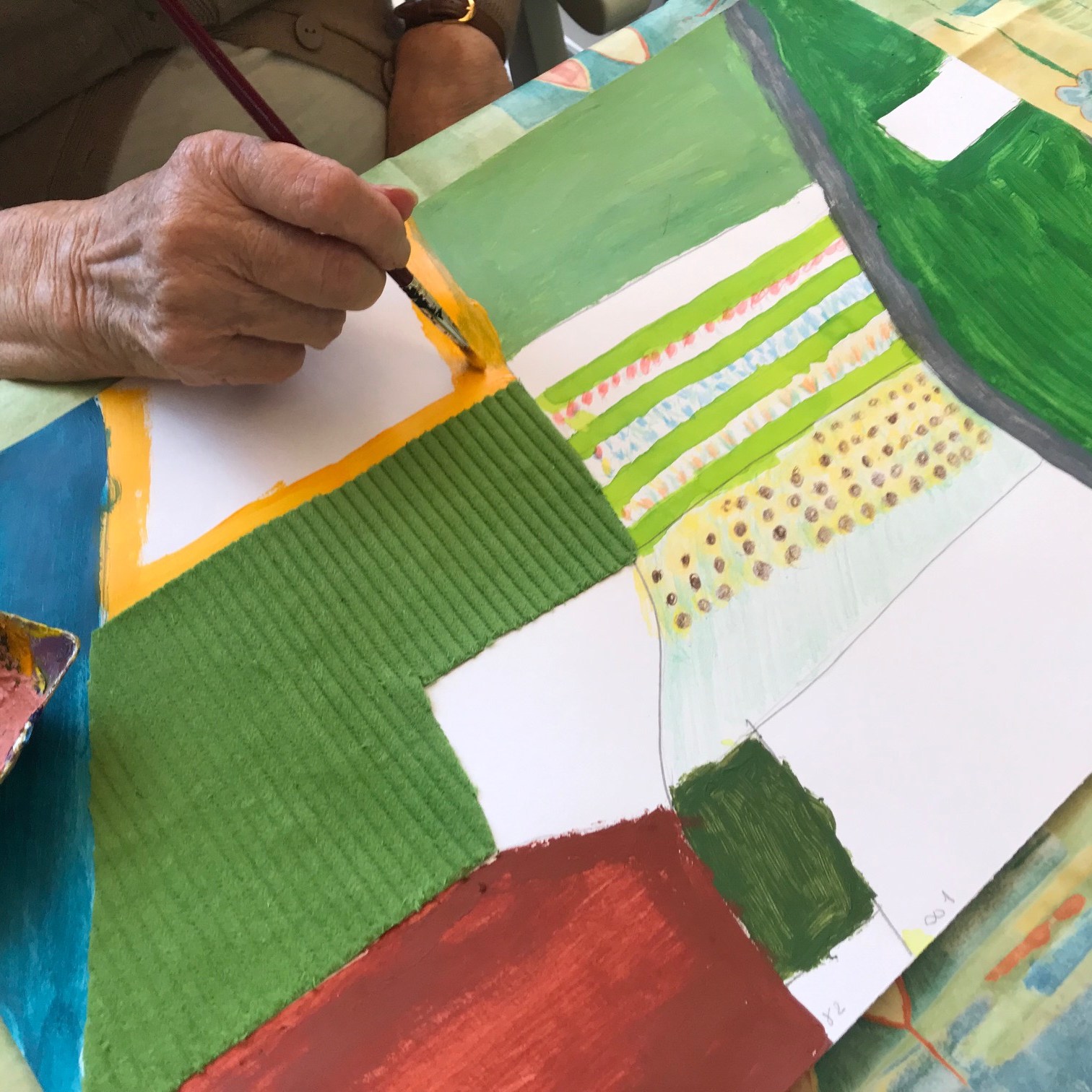 Je varie les savoir-faire plastiques d’un projet à l’autre (peinture, collage, tressage, tissage, composition, découpage, impression, etc) stimulant les participants au niveau sensori-moteur à différents degrés : de la motricité fine jusqu’à la structuration des choix dans l’assortiment des harmonies colorées.