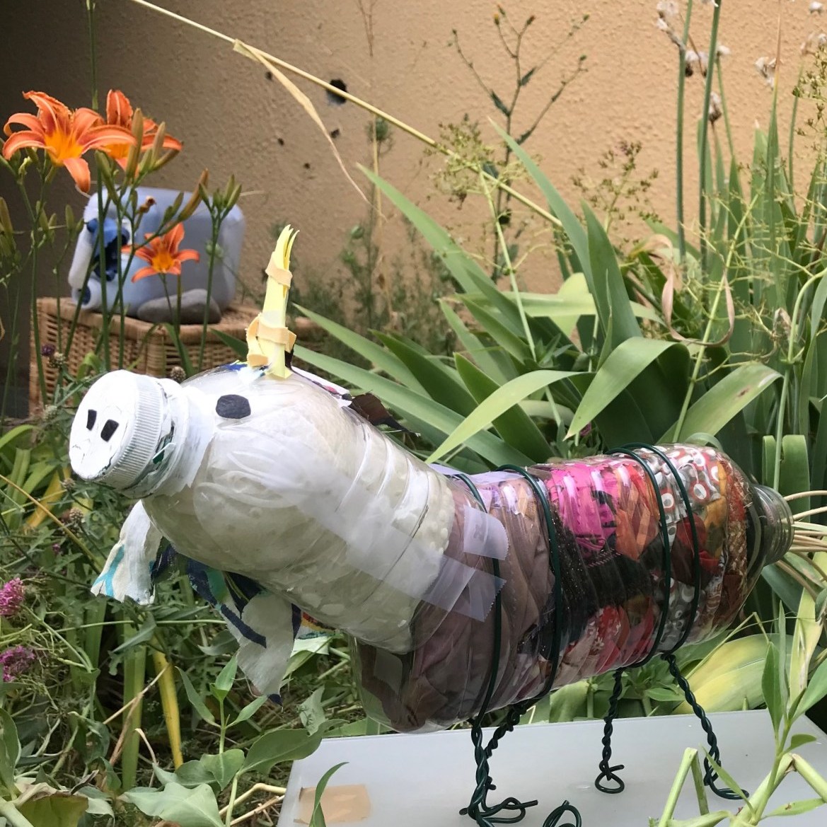 Et enfin détournement d’objets (contenants plastiques), travail de croquis, d’élaboration, et fabrication pour les CM1/CM2.